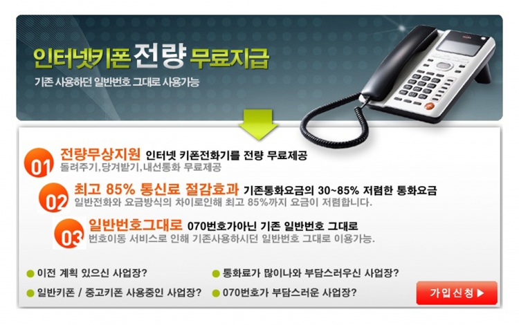 영세사업장이나 초기비용없이 설치가 가능한 인터넷 키폰전화를 적극 추천합니다.
