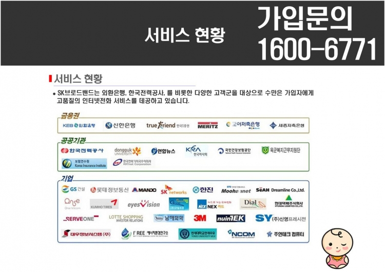 - 타사에서 쓰는 번호 그대로 SK브로드밴드로 이동할 수 있어 안정적입니다.